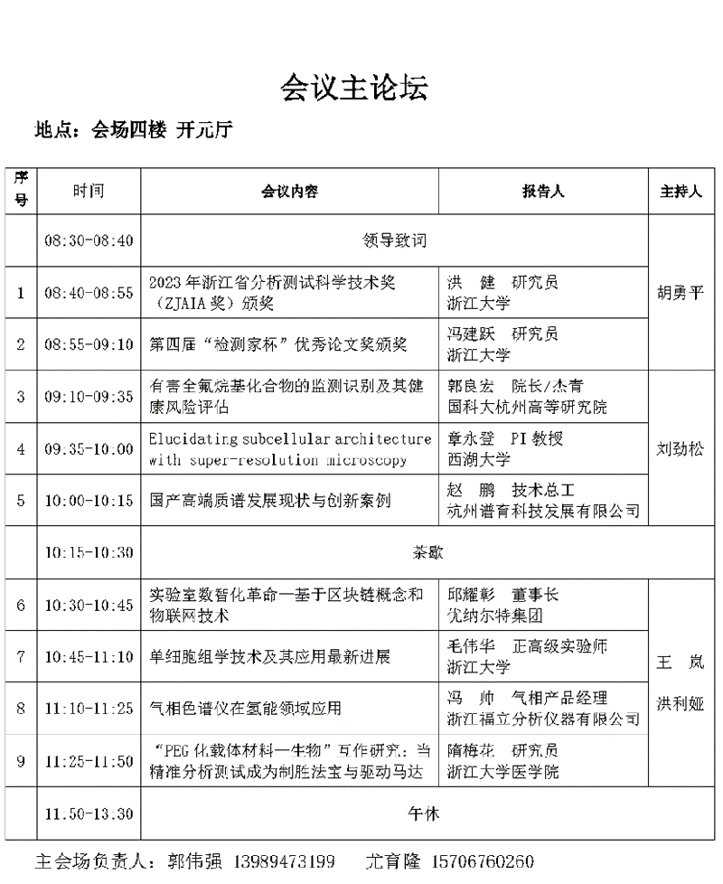 本次會(huì)議為期一天,上午設(shè)主會(huì)場(chǎng),邀請(qǐng)了省內(nèi)外知名專(zhuān)家學(xué)者作大會(huì)報(bào)告;下午設(shè)7個(gè)分會(huì)場(chǎng):色譜與質(zhì)譜分析、光譜與電化學(xué)分析、電鏡與微結(jié)構(gòu)分析、細(xì)胞生物與生化分析、生物大分子分析、核磁共振波譜分析以及檢驗(yàn)檢測(cè)機(jī)構(gòu)等專(zhuān)業(yè)領(lǐng)域的專(zhuān)家學(xué)者及青年學(xué)者作分會(huì)場(chǎng)專(zhuān)題報(bào)告。會(huì)議還設(shè)有國(guó)內(nèi)外廠(chǎng)商分析測(cè)試儀器及相關(guān)設(shè)備展區(qū)。