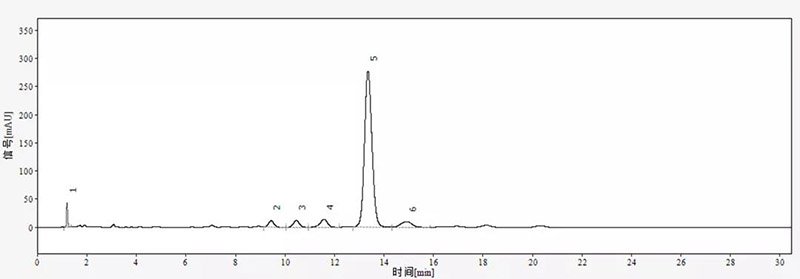 甲氨基阿維菌素苯甲酸鹽是在甲氨基阿維菌素的基礎(chǔ)上合成的高效生物藥劑,它具有高效、低毒、無(wú)殘留、無(wú)公害等生物農(nóng)藥的特點(diǎn),即擴(kuò)大了殺蟲(chóng)譜,但又降低了對(duì)人畜的毒性。依利特使用EClassical 3200高效液相色譜儀匹配新款的SinoPak BEH T-C18色譜柱,對(duì)甲氨基阿維菌素進(jìn)行分析檢測(cè)。