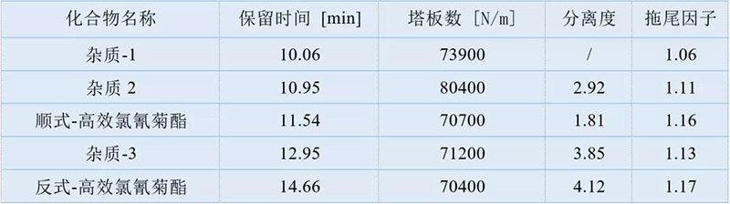 高效氯氰菊酯樣品分析色譜參數(shù)