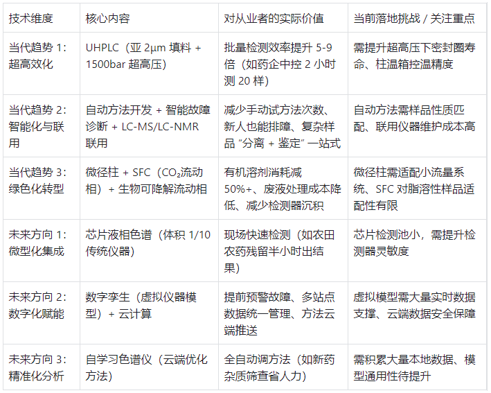 表 2:當(dāng)代 HPLC 技術(shù)趨勢與未來方向概括表?