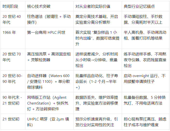 表 1:HPLC 技術(shù)發(fā)展關(guān)鍵節(jié)點(diǎn)概括表