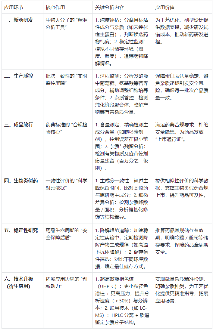 表1:高效液相色譜儀在生物制藥中的應(yīng)用概括表?
