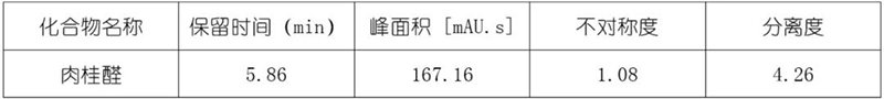 2)肉桂醛標(biāo)準(zhǔn)液的配制:取肉桂醛中間液250μL,加入3750μL乙腈,溶解混勻,過(guò)0.45μm濾膜,肉桂醛含量為50mg/L。