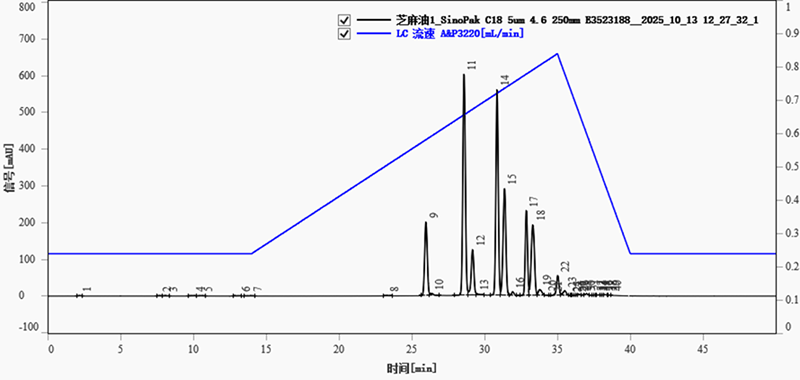 芝麻油作為一種常見的食用植物油和藥物輔料,其質(zhì)量和成分分析尤為重要。甘油三酯是芝麻油的主要成分,其組成直接影響油的營養(yǎng)價(jià)值、穩(wěn)定性和應(yīng)用性能。本文將介紹如何使用高效液相色譜法結(jié)合蒸發(fā)光散射檢測器(HPLC-ELSD)對芝麻油中的甘油三酯進(jìn)行分析,并對比國家標(biāo)準(zhǔn)GB/T 44614-2024《糧油檢驗(yàn),植物油中甘油三酯組成的測定,高效液相色譜法》與2025版《中國藥典》中芝麻油標(biāo)準(zhǔn)的分析方法。