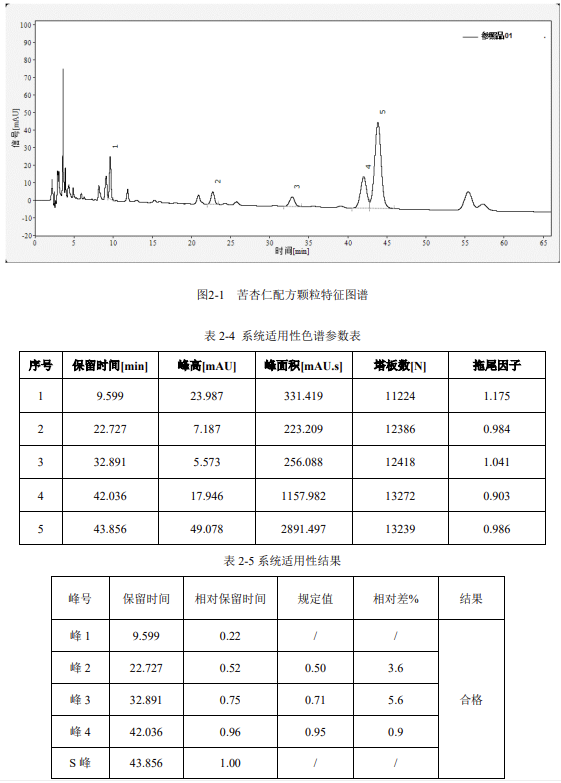 由此可見,使用依利特 EClassical 3200 高效液相色譜儀以及 Supersil AQ-C18,測得的苦杏仁配方顆粒的特征圖譜滿足藥典要求。