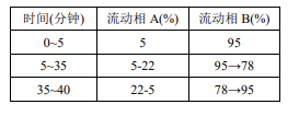 流動相:流動相 A:乙腈,流動相 B:0.4% 磷酸水溶液(梯度洗脫)