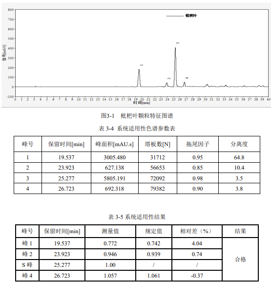 由此可見,使用依利特 EClassical 3200 高效液相色譜儀以及 Supersil AQ-C18 色譜柱,測得的枇杷葉配方顆粒的特征圖譜滿足藥典要求。
