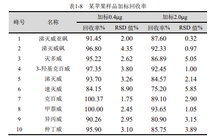 大連依利特分析儀器有限公司,結(jié)合《NY/T 761-2008 蔬菜和水果中有機(jī)磷、有機(jī)氯、擬除蟲菊酯和氨基甲酸酯類農(nóng)藥多殘留的測(cè)定》方法及相關(guān)文獻(xiàn)中關(guān)于農(nóng)殘測(cè)定的要求,建立的氨基甲酸酯分析系統(tǒng),提出了蔬果中氨基甲酸酯類農(nóng)藥殘留檢測(cè)的全套解決方案,并以蘋果為樣品進(jìn)行了檢測(cè),實(shí)驗(yàn)結(jié)果能夠達(dá)到標(biāo)準(zhǔn)中各項(xiàng)指標(biāo)要求。