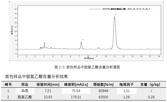 參考標(biāo)準(zhǔn):GB 5009.121-2016《食品安全國家標(biāo)準(zhǔn) 食品中脫氫乙酸的測定》,分析全麥夾心面包中脫氫乙酸的含量