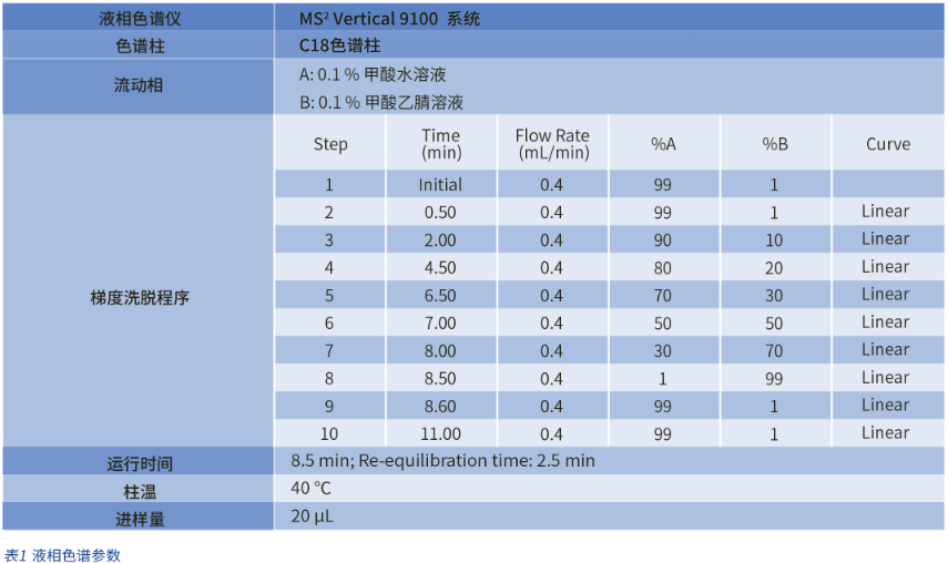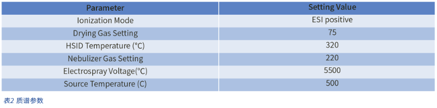 液相色譜和質(zhì)譜參數(shù)分別參見表 1、2 和 3