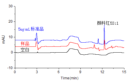 | 加標(biāo)濃度(mg/mL) | 酸性黃36 | 顏料紅53:1 | 蘇丹紅Ⅱ |