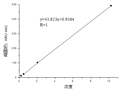 圖7-6 顏料橙5濃度與峰面積線性關(guān)系圖(484nm)