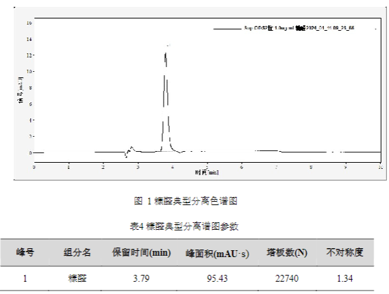 取濃度為 1.0μg/mL 的糠醛標準溶液進樣,按照 2.2 色譜條件進行分析,結果如下圖: