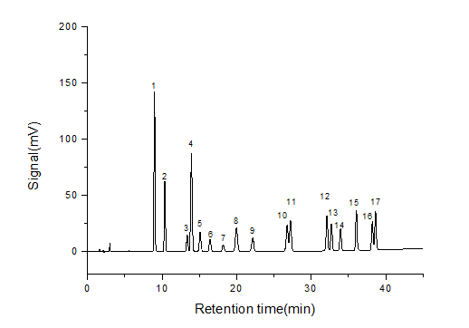 峰號(hào)物質(zhì)保留時(shí)(min)峰面(mV·sec)不對(duì)稱度塔板數(shù)(N/m)