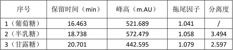 糖分析專用柱配合示差折光檢測器,能很好的將葡萄糖、半乳糖和甘露糖3個目標(biāo)物達到很好的分離,且峰形良好是分離小分子糖的良好選擇。