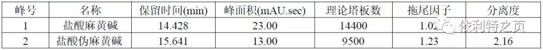 理論板數(shù)按鹽酸麻黃堿峰計算應(yīng)不低于5000。