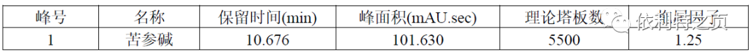 理論塔板數(shù)按苦參堿峰計(jì)算應(yīng)不低于3000。