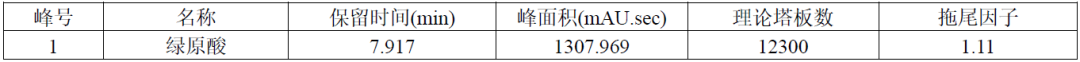 理論板數(shù)按綠原酸峰計算應不低于2000。