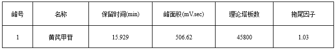 系統(tǒng)適用性要求:理論塔板數(shù)按黃芪甲苷峰計算應(yīng)不低于3000。